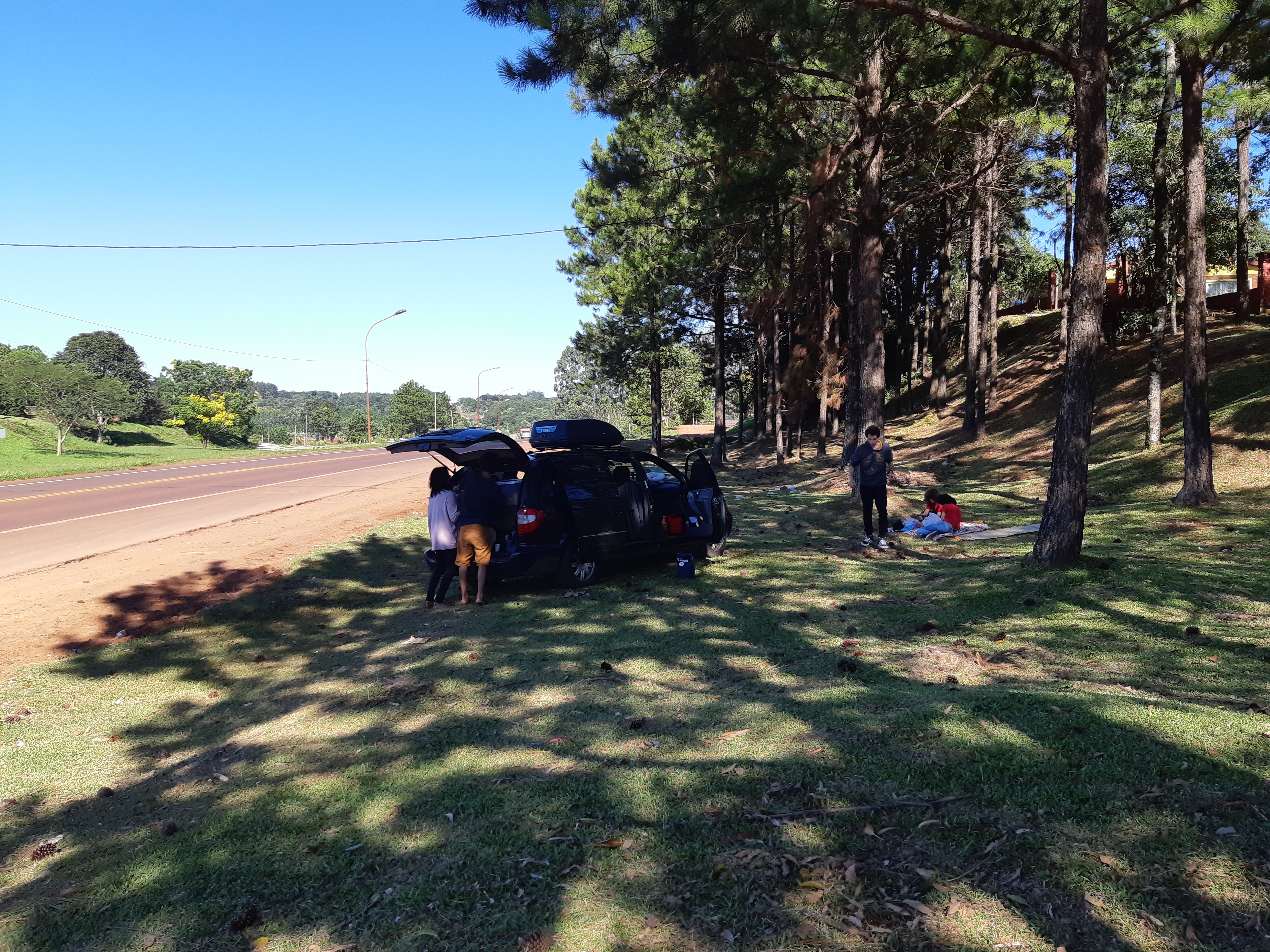 Em Posadas a Caravan nos deu o primeiro susto (de um milhão de outros sustos que sucederam esse!). Fizemos uma curva acentuada para a esquerda, numa descida e o carro apagou… Já deduzi que era porque o tanque estava com pouco combustível e a bomba não estava conseguindo puxar direito. Parei com o carro no acostamento, numa parte plana. Dei partida e pronto o carro funcionou de novo.