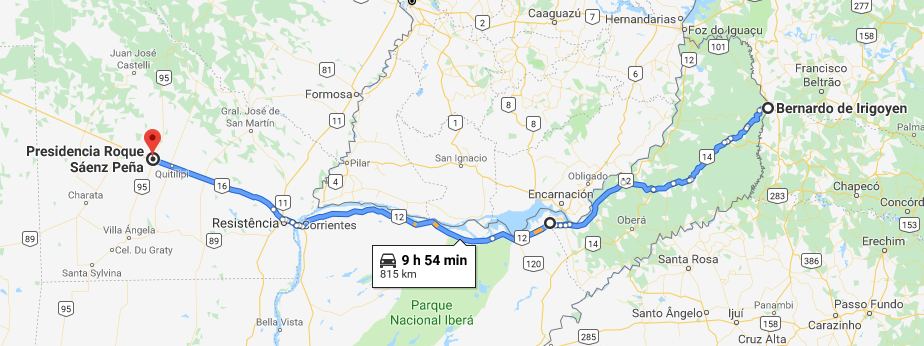 Quando chegamos em Posadas chegamos a ensaiar uma chegada no Paraguai pela ponte que dá acesso a Encarnacion, mas a fila estava muito grande… Na entrada da ponte perguntei para o pessoal da fronteira e disse que teríamos que realizar o trâmite de entrada e saída da Argentina pro Paraguai na volta a mesma coisa… Meia-volta! Esquece entrar no Paraguai, ia atrasar demais nossa programação…