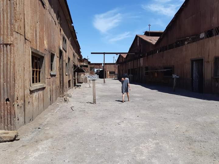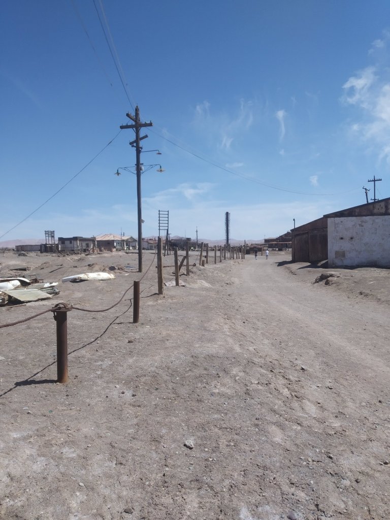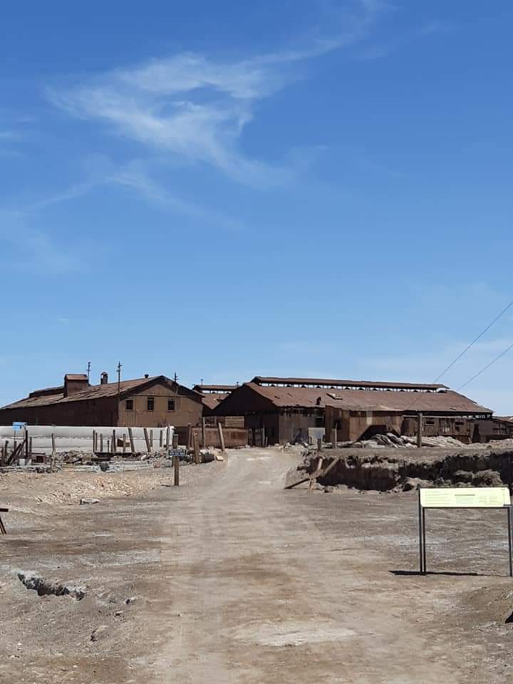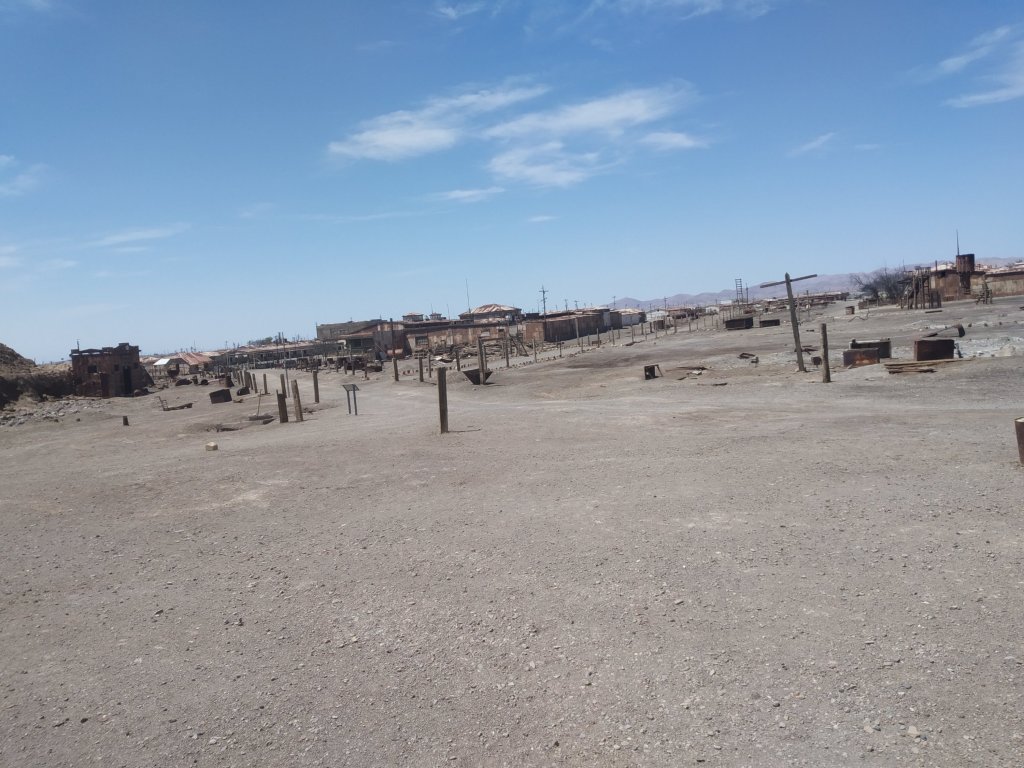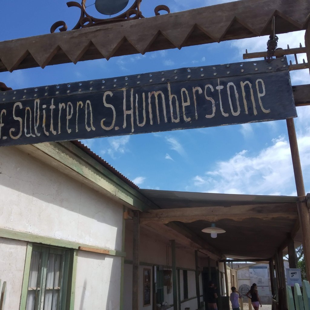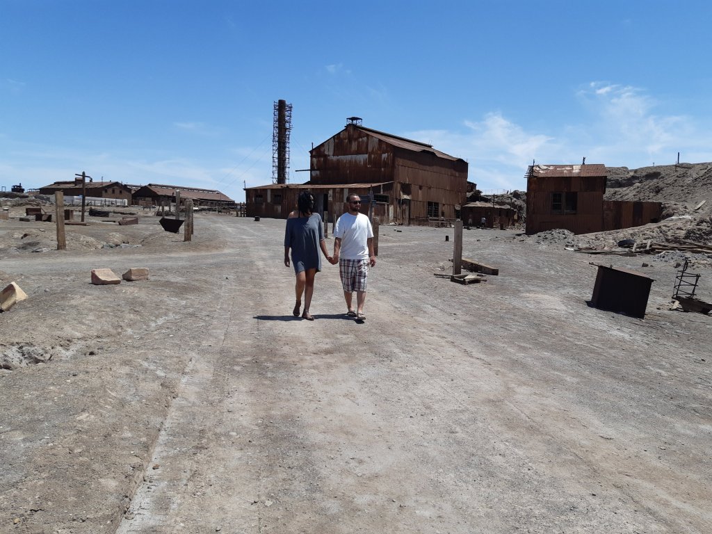 Saímos em direção ao Peru na estrada ao olharmos para a esquerda vimos uma cidade aparentemente abandonada. Não sabíamos ainda que se tratava da cidade fantasma de Humberstone. Fizemos a volta e então lendo com mais atenção as placas é que nos demos conta de que estávamos próximos de conhecer um dos locais mais interessantes da viagem.