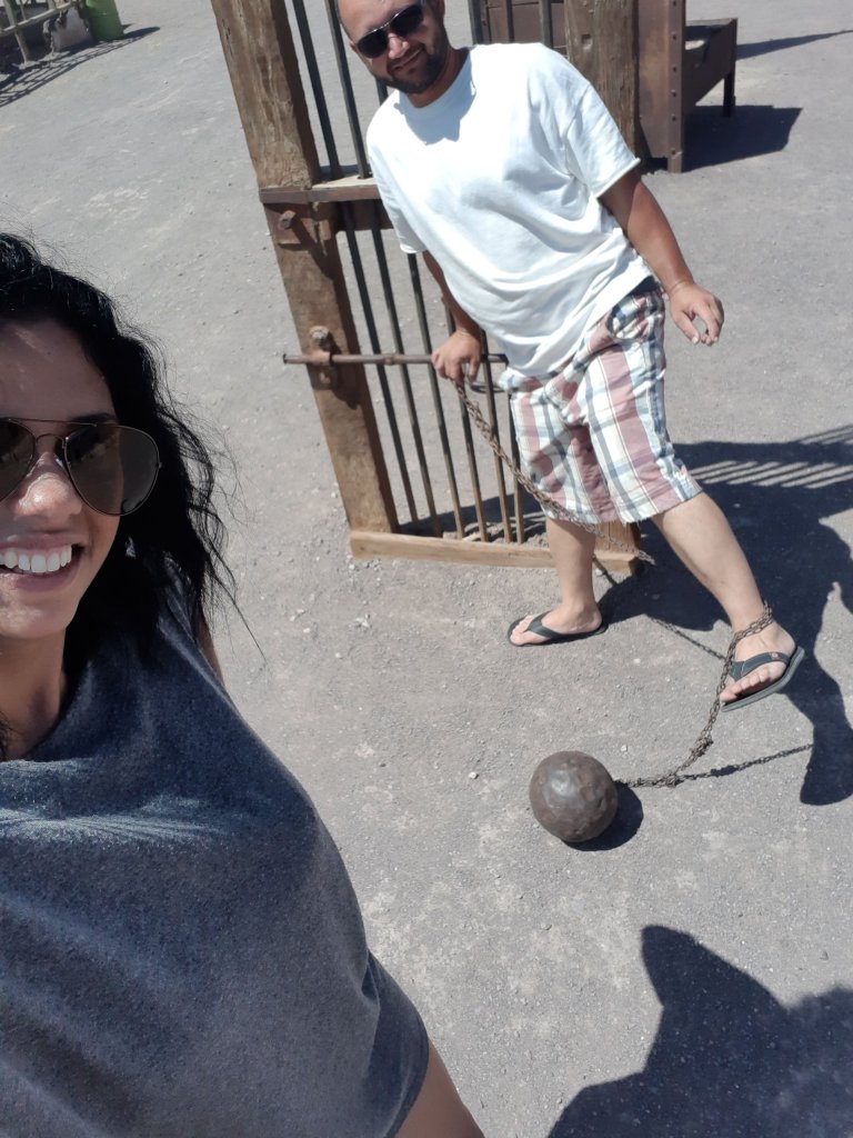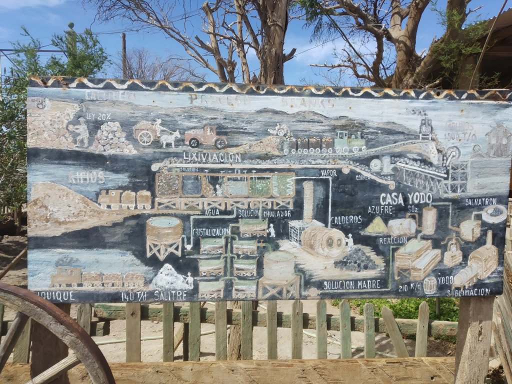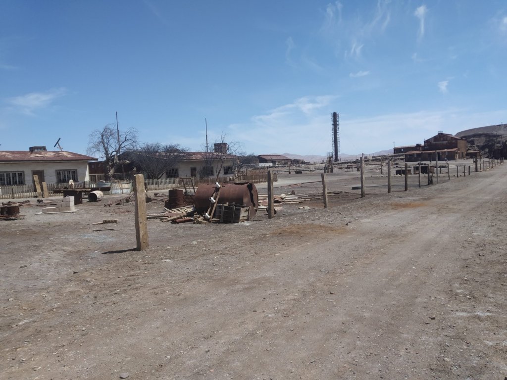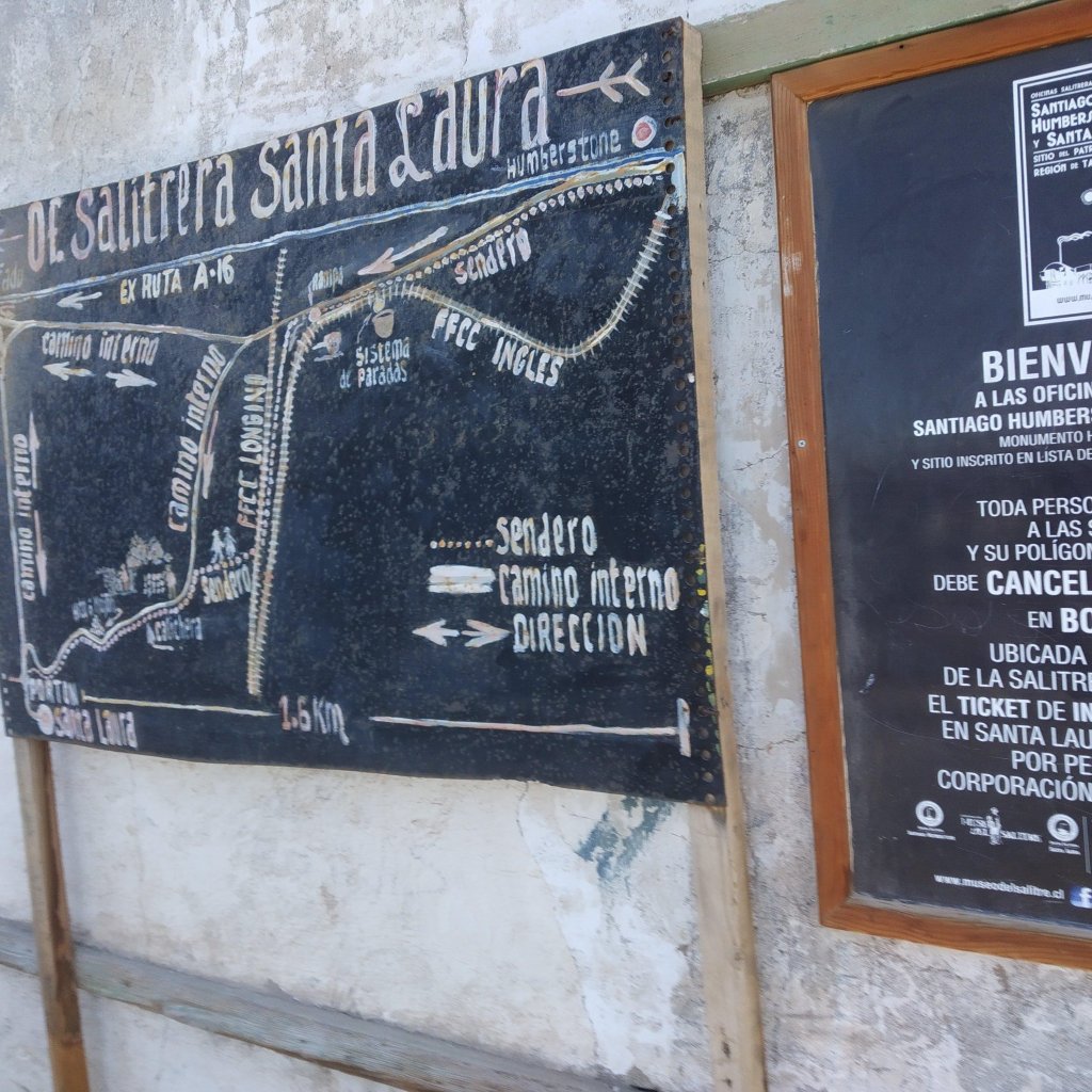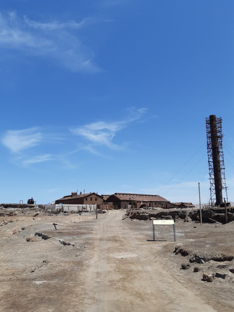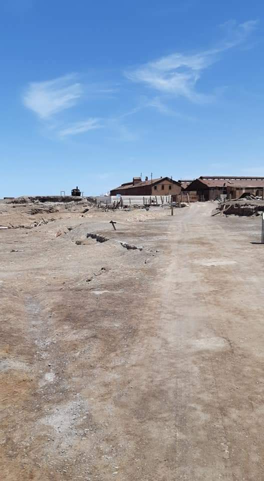 Saímos em direção ao Peru na estrada ao olharmos para a esquerda vimos uma cidade aparentemente abandonada. Não sabíamos ainda que se tratava da cidade fantasma de Humberstone. Fizemos a volta e então lendo com mais atenção as placas é que nos demos conta de que estávamos próximos de conhecer um dos locais mais interessantes da viagem.