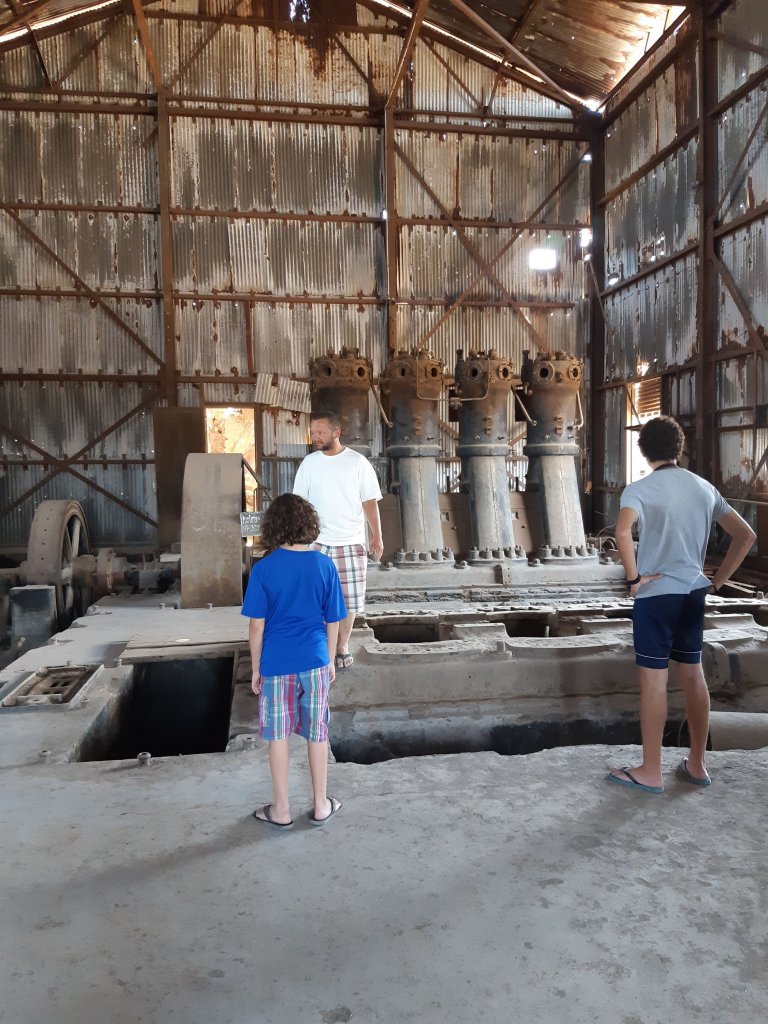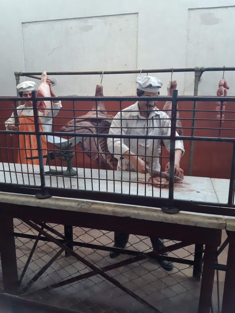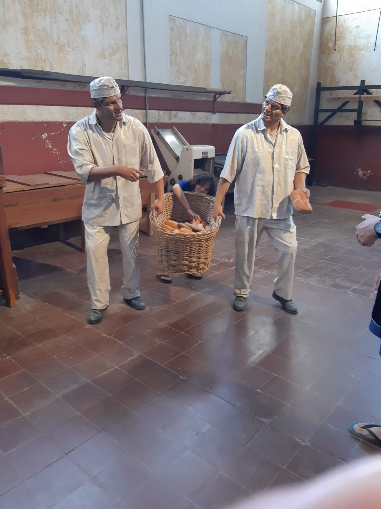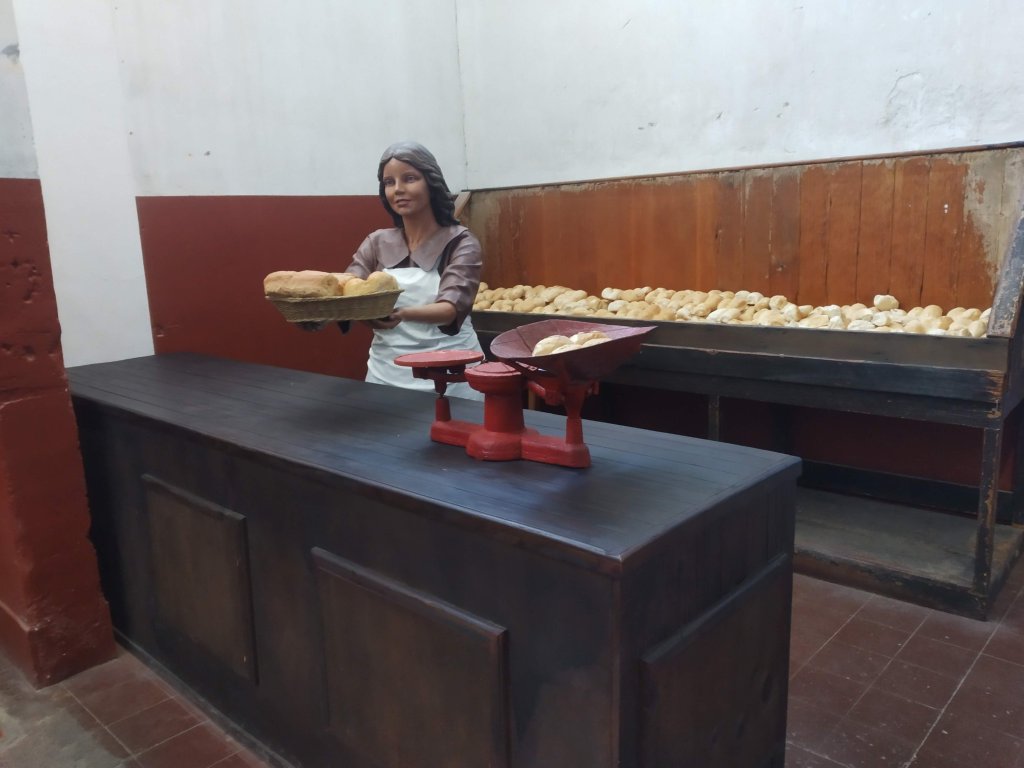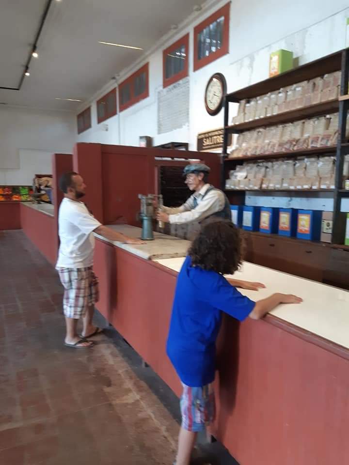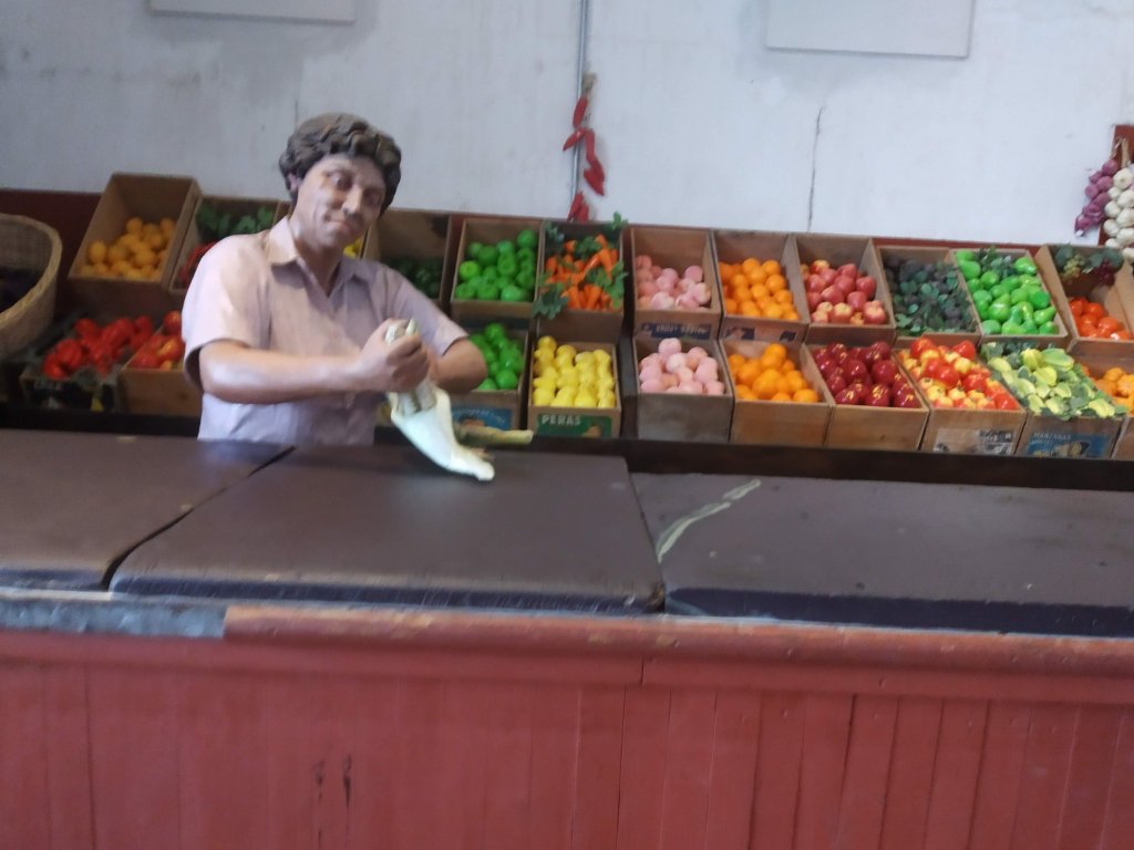 Passamos praticamente a manhã toda e não conseguimos conhecer tudo o que tem. Muita coisa para ver. Desde casas com os móveis dos antigos moradores, móveis e utensílios antigos. Fábricas com os maquinários, locomotivas, automóveis. Pudemos conhecer a casa do “chefe”, prefeitura, escola, hospital, teatro… uma cidade completa. No armazém e na estação do trem se concentrava a maior atividade da antiga cidade e lá estão os bonecos de cera simulando vendedores, padeiros, açougueiros, passageiros, crianças… e um som ambiente reproduz vozes, gritos, apitos, motores, locomotivas. Volta ao passado, você pode sentir a atmosfera da época.