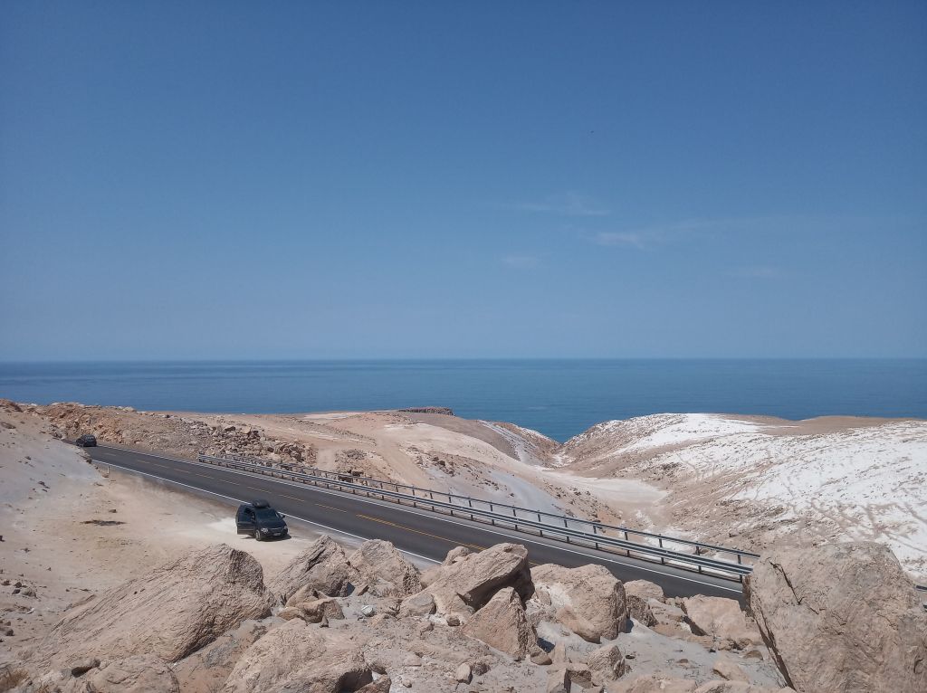 Durante a madrugada do dia 01/03/2019 após comprar o SOAT partimos em direção ao Pacífico. Chegamos na cidade de ILO. Não tinha visibilidade do que existia em volta da rodovia, apenas o que o farol do carro iluminava, e era apenas areia e deserto, até chegar na rodovia Costanera que margeava o Pacífico.