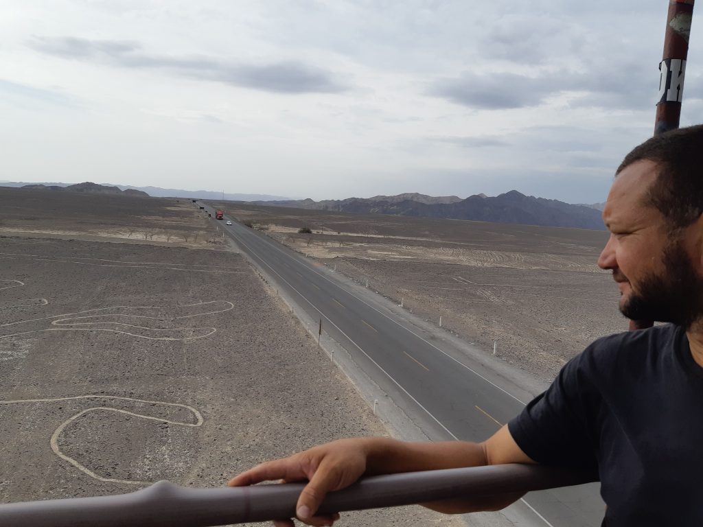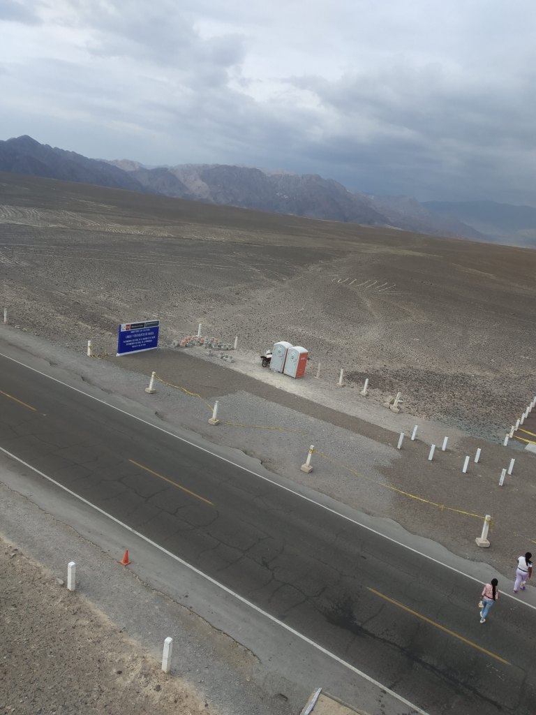 No caminho, após uns 30 kms após sairmos de Nazca paramos no mirante das linhas de Nazca. O ingresso para subir no mirante custa 2 Soles por pessoa, para estudantes e menores de 12anos 1 Sol. Um mirante maior está sendo construído do outro lado da rodovia.