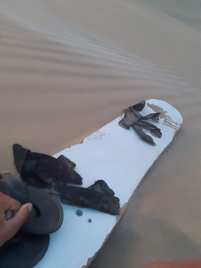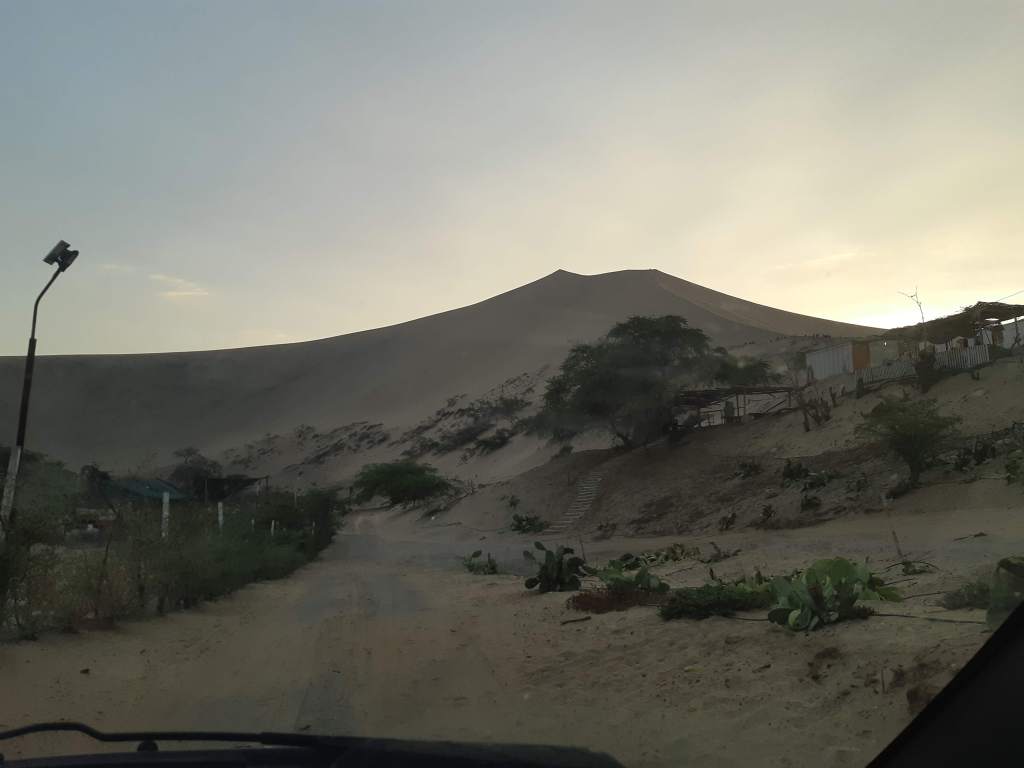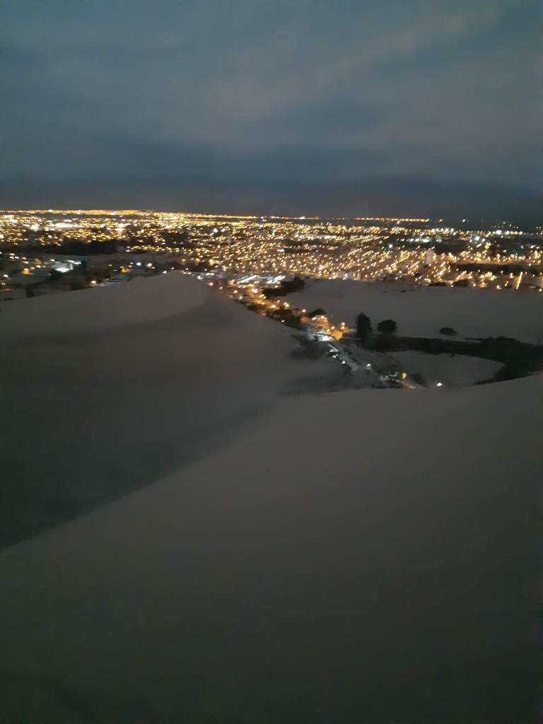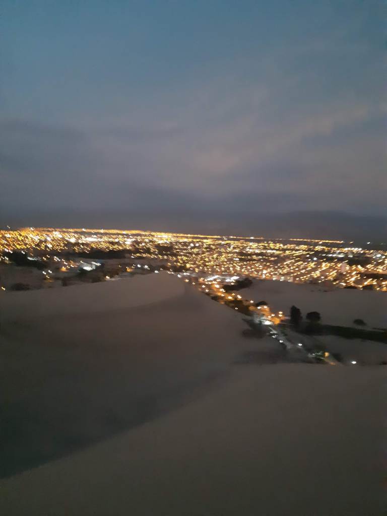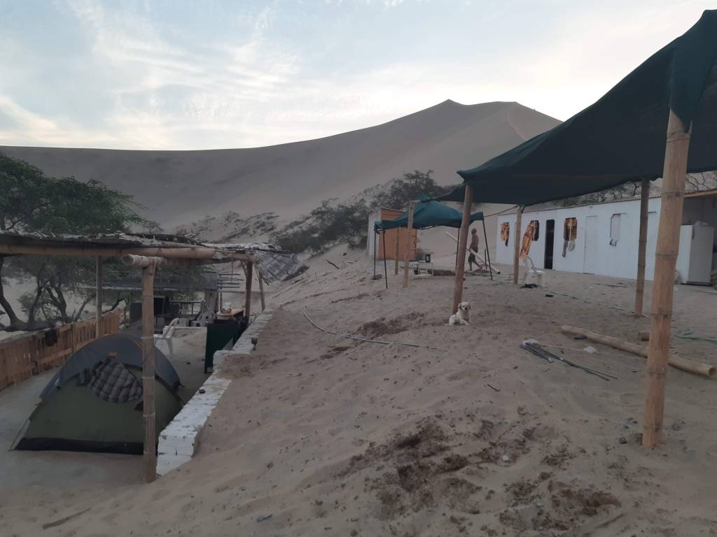 Dunas gigantes, gigantescas… Eu não consegui subir nem na metade. Os meninos subiram até o topo. O lugar fornecia as pranchas para sandboard , sem qualquer custo. Pagamos a hospedagem lá mesmo em dinheiro, 10 Soles por pessoa…