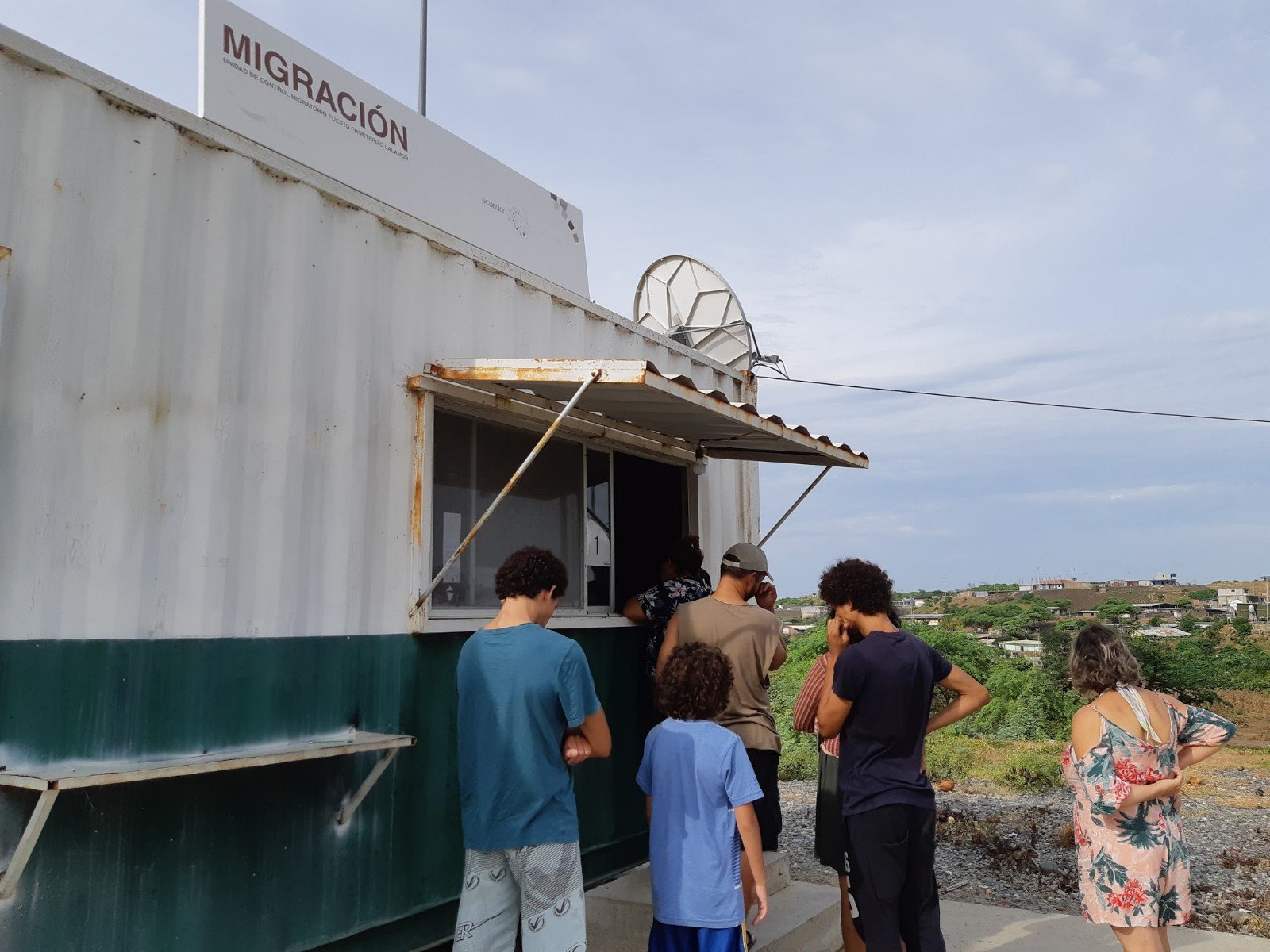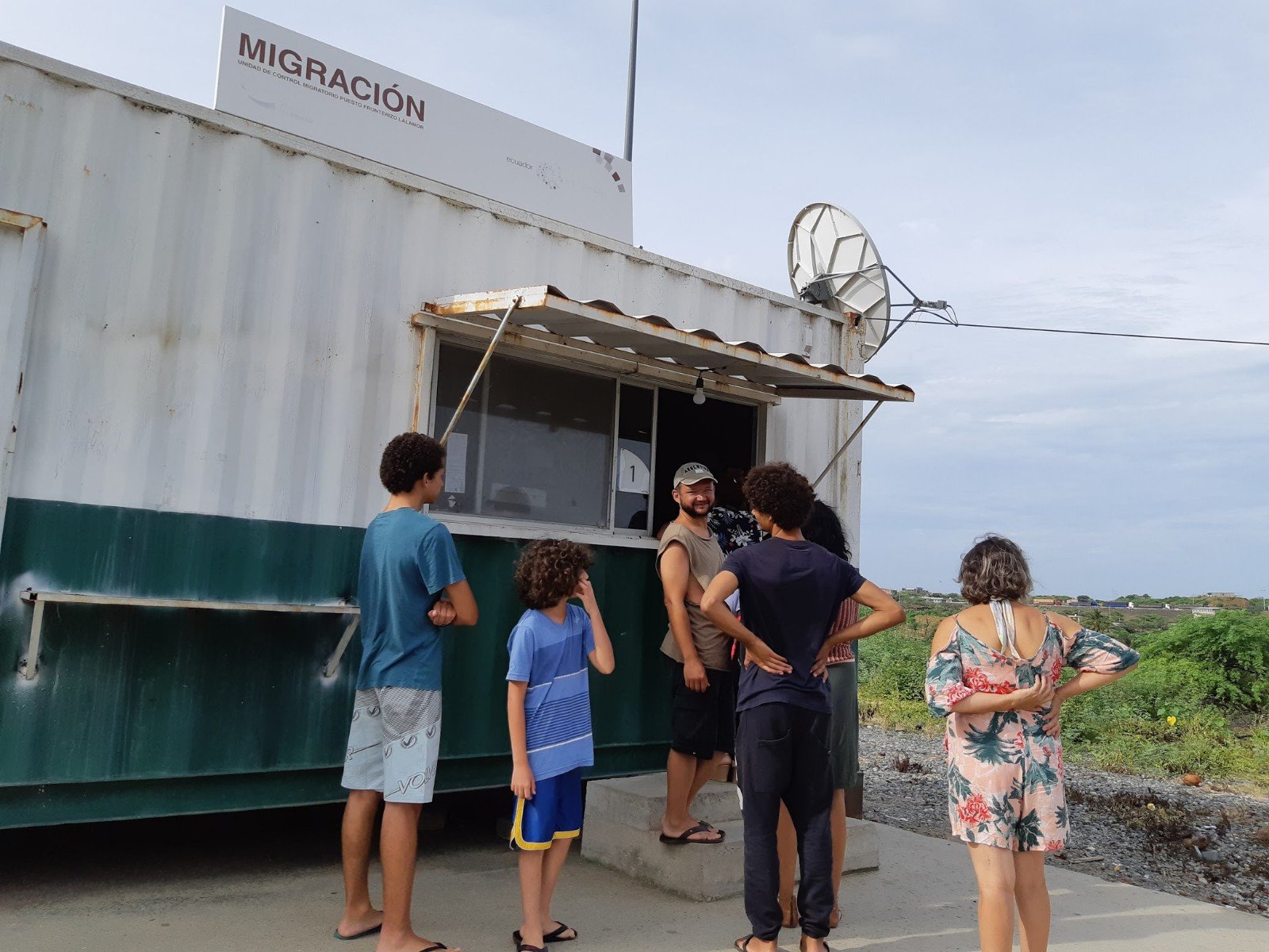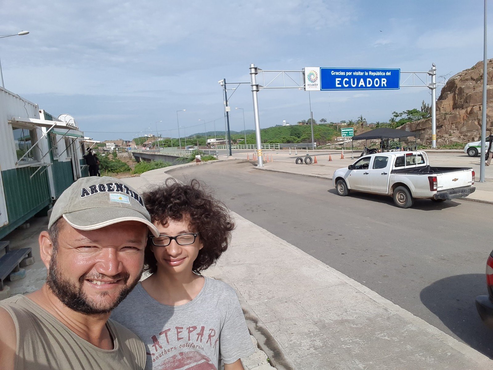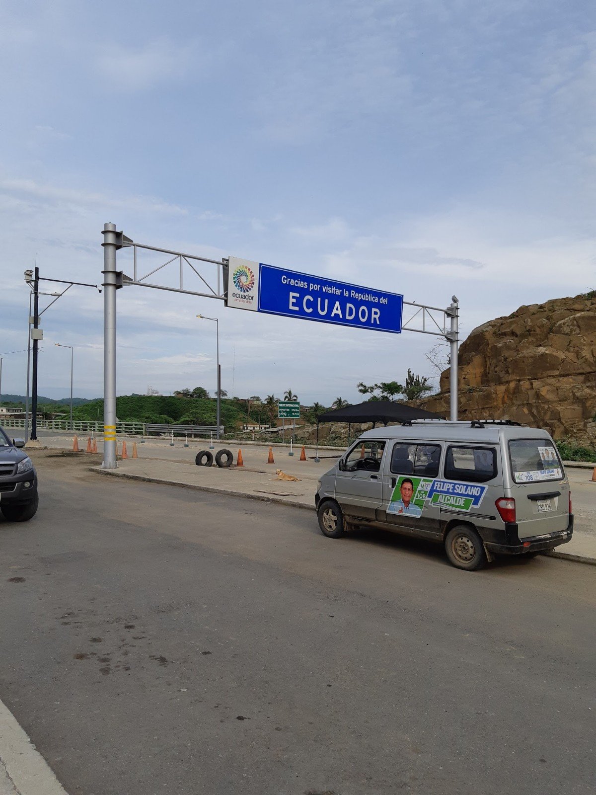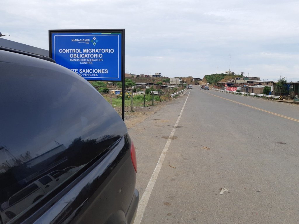 As aduanas em El Alamor são separadas, antes da ponte tem a do Peru, após Equador. Na saída do Peru entregamos o documento SUNAT. Um agente de polícia pegou o documento e nem sabia o que fazer, mostrou para um outro senhor mais idoso e traços orientais que estava num escritório. Esse senhor pegou o papel, jogou sobre a mesa e continuou se alimentando. Perguntei se ficava com alguma via ou comprovante. Apenas acenou que não. Fiquei preocupado, e se ele não desse baixa. Poderia me prejudicar quando retornasse ao Peru e fosse dar entrada no veículo novamente. Mas o que fazer? Apenas fotografar a minha saída com o veículo, deixar registrado, pelo menos. E foi o que fizemos.