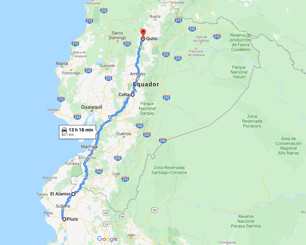Acordamos 06h e já aceleramos em direção a fronteira que estava apenas 100km. Não fizemos a melhor escolha de rota. Confiamos no Google Maps e não fomos felizes. Deveríamos ter ido por Huaquillas, mas o Google apresentava El Alamor como sendo a melhor rota. A diferença não chega a 70km, mas é muito pior o caminho.