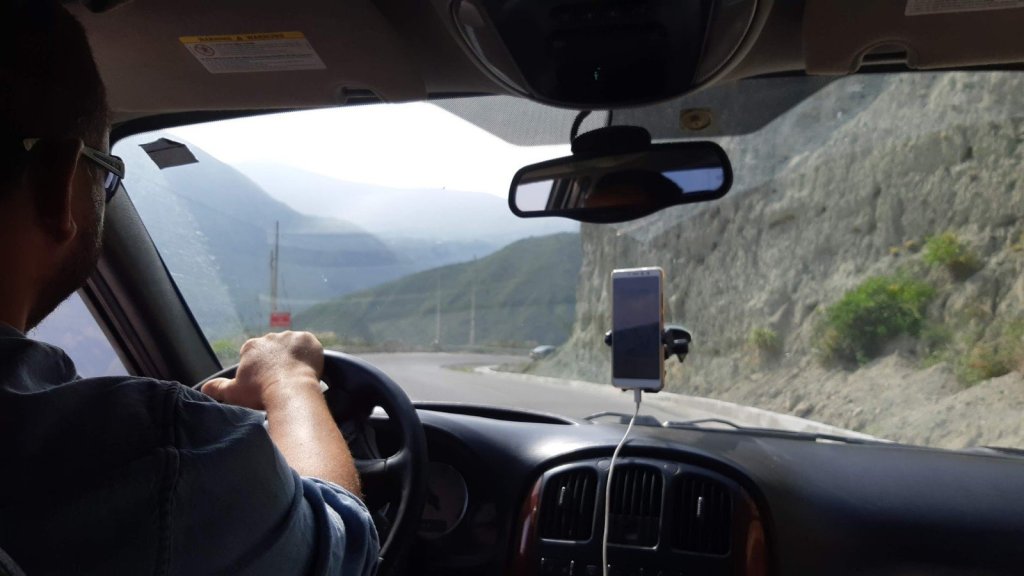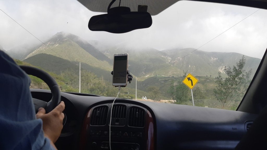 O Google Maps só para variar nos fez passar pela rota mais amarrotada possível. Existia outro caminho via Puellaro, muito menos sinuoso. Porém fazer o caminho passando por Tanlahua nos proporcionou um passeio espetacular pelas montanhas. Descidas íngremes, curvas com quase 270 graus, pavimento com sinais de deslizamentos recentes e a falta de qualquer grade de proteção nas laterais da pista não favoreciam arriscar a velocidade superior a 20km/h, isso mesmo… Alavanca de marcha no 2, primeira marcha engrenada e o motor segurando na descida. Nesse momento utilizamos todo o potencial de ter um motor 3,3 V6 na Grand Caravan. Se fosse contar apenas com os freios eu nem sei se estaríamos aqui para contar essa história.