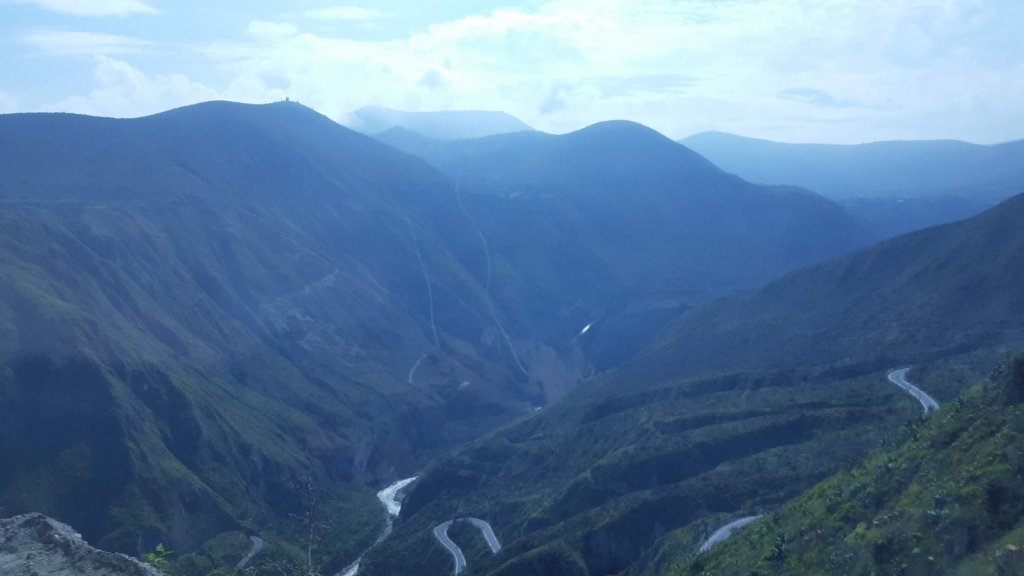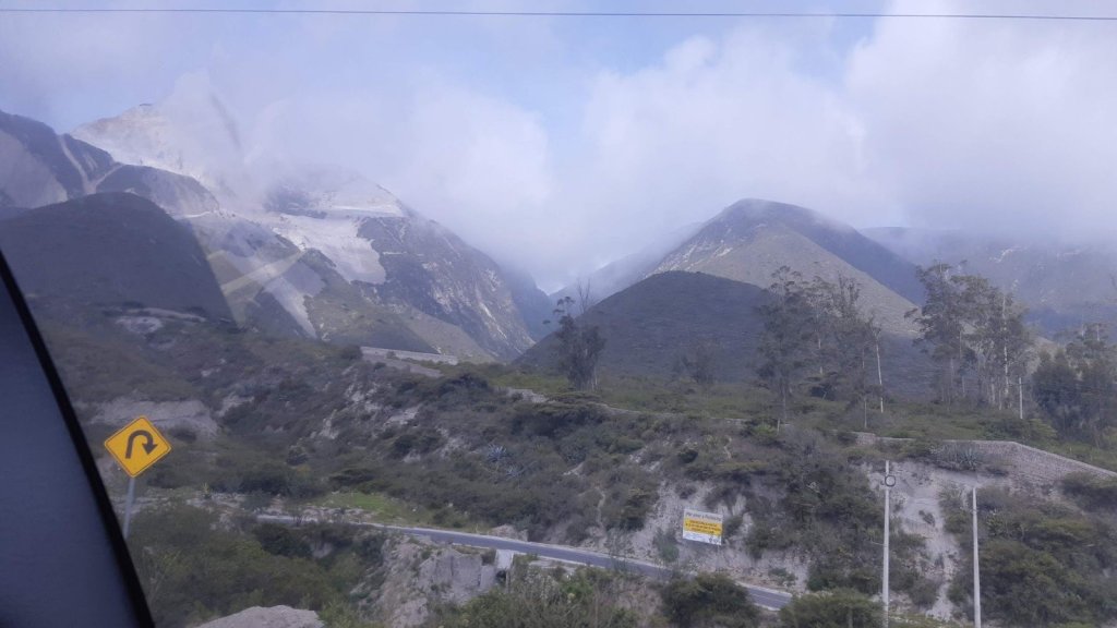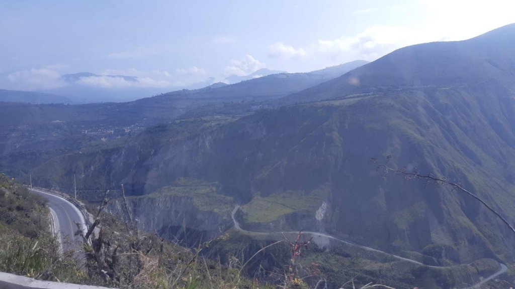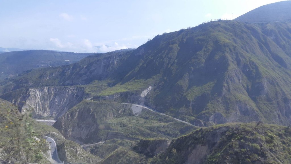 Em alguns momentos a estrada parecia desaparecer da frente do carro, principalmente ao fazer uma curva. Adrenalina em alto nível. Não cruzamos com nenhum veículo de carga e alguns automóveis subindo. Presumimos que deveria existir outro caminho para a capital Quito, pois para escoar produção daquele lugar definitivamente aquele caminho dificilmente seria o utilizado. E também definimos, que qualquer que fosse a distância que esse outro caminho tivesse, iríamos voltar por ele, por ali não seria nem de longe uma boa idéia voltar.