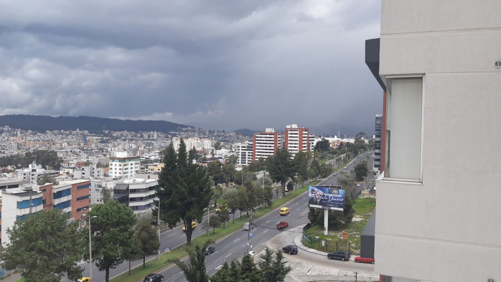 Voltamos para Quito, pelo caminho menos complicado, bem menos. E o que mais chamou atenção era a extensão das descidas e subidas. Principalmente nas auto-estradas, eu não medi mas passamos por trechos de pelo menos 10km de descida… a impressão era que não acabaria mais de descer. E do alto dessa estrada era possível enxergar no horizonte o imponente vulcão Cotopaxi. A cidade de Quito já está localizada em uma altitude considerável, mesmo localizada entre montanhas, os pontos mais baixos tem pelo menos 2600/2800 metros do nível do mar…