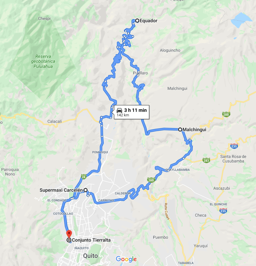 Chegando em Quito passamos em um supermercado chamado Supermaxi no bairro de Carcelén. Pegamos algumas coisas para o almoço. Os preços não eram muito atrativos, mas nada exorbitantes.