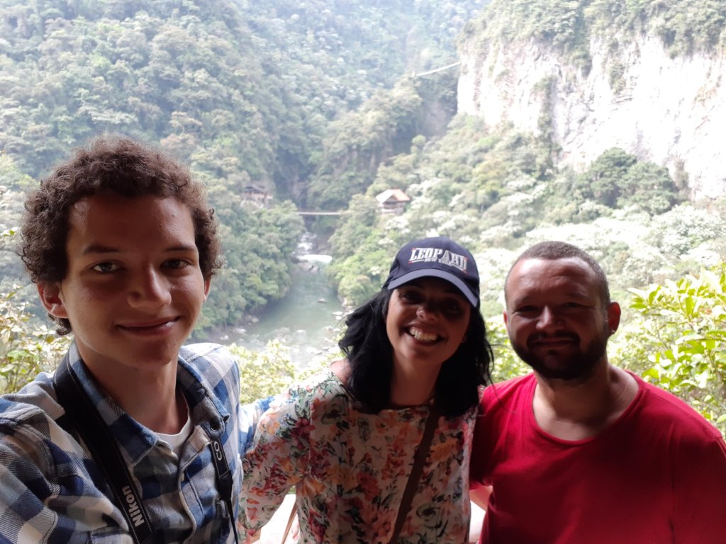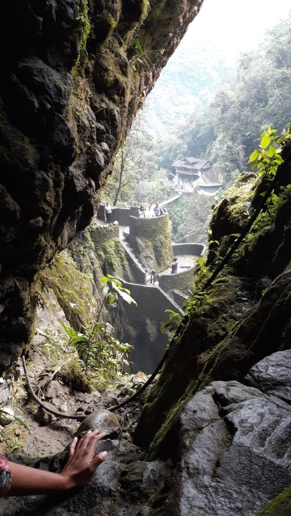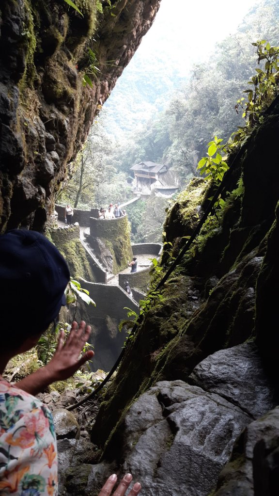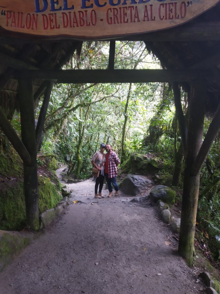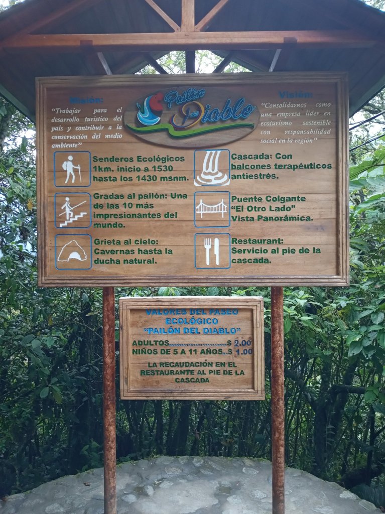 Fomos para a famosa cachoeira El Pailon del Diablo. Ficava a uns 15km do hostel.