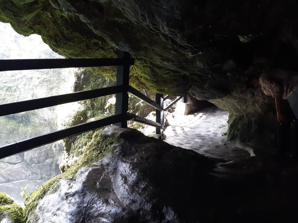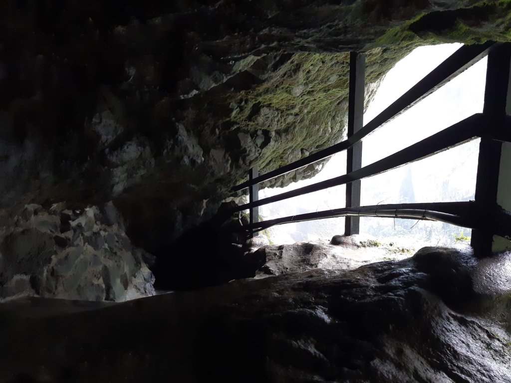 Depois de subir as escadarias e acessar o mirante da cachoeira existe um desafio adicional: acessar a parte de trás da cachoeira. Não é muito recomendado para quem tem algum problema de flexibilidade, pois tem uma parte que só é possível passar de “gatinho” num túnel feito na pedra, mas vale muito a pena o esforço. A recompensa é uma das sensações mais incríveis da força da natureza!