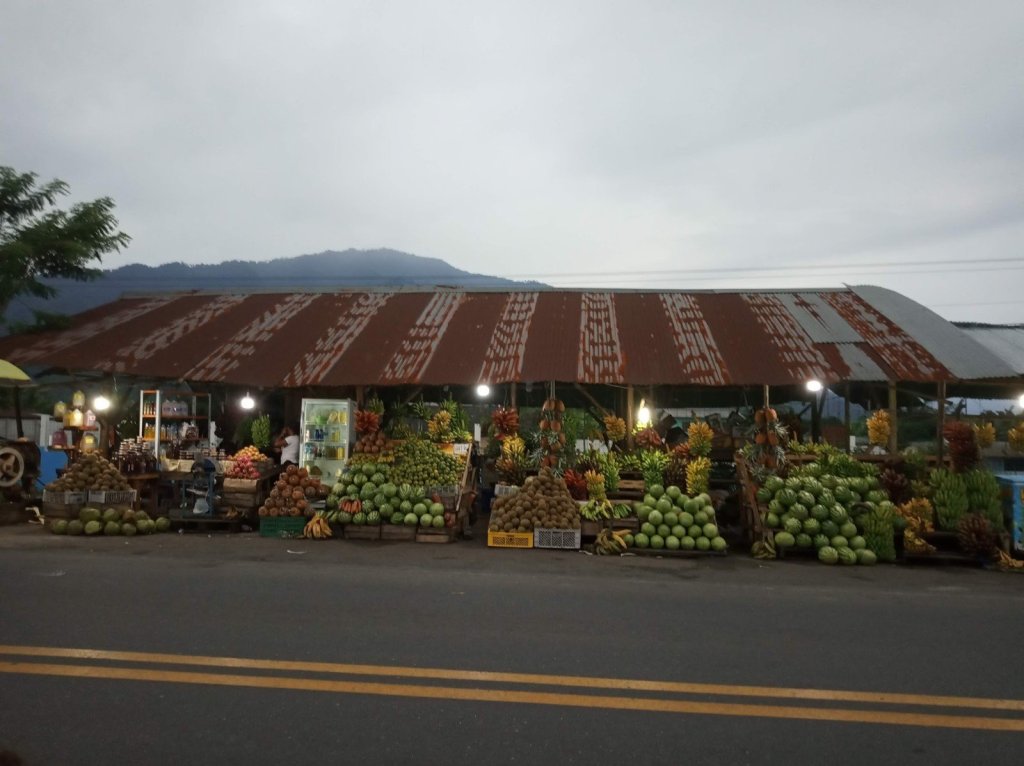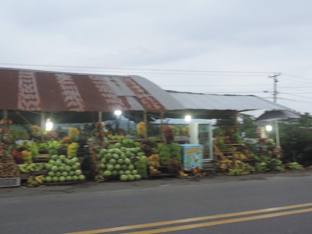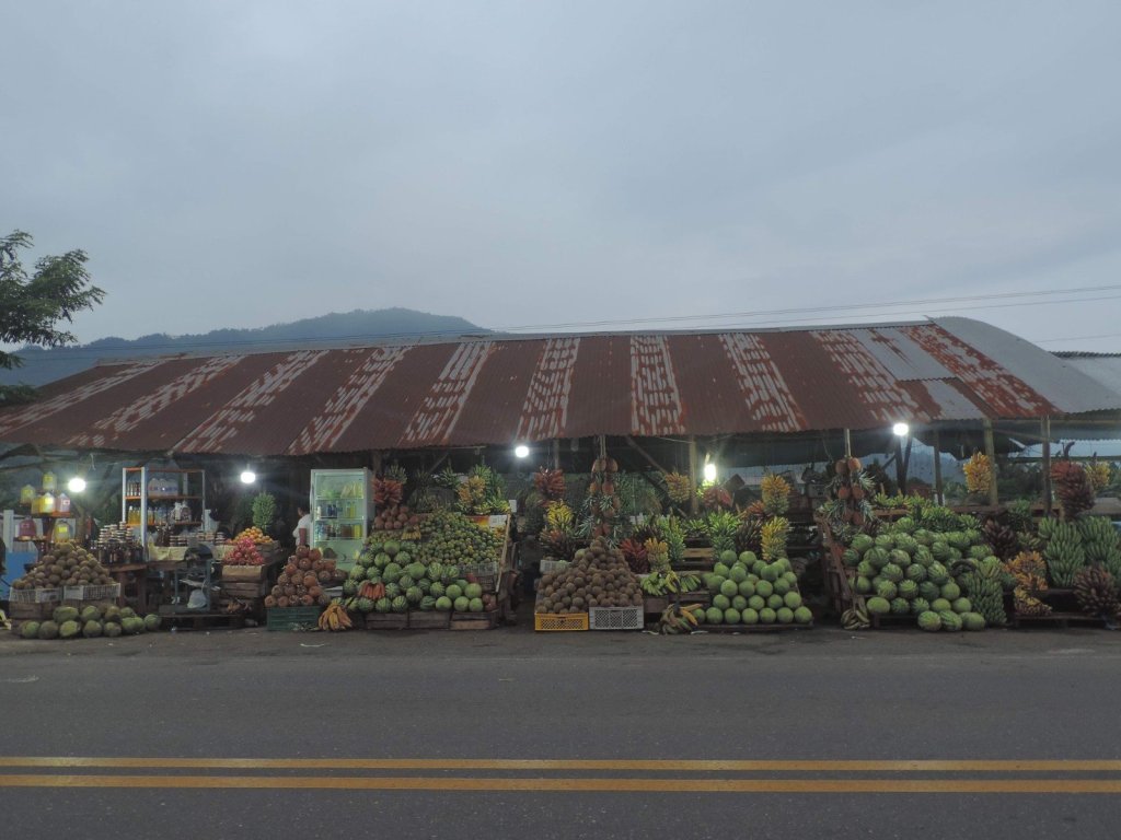 Encontramos uma banca de frutas, uma senhora que nos atendeu tão bem. Muito simpática! As frutas bem frescas, ela inclusive lavou para nós.