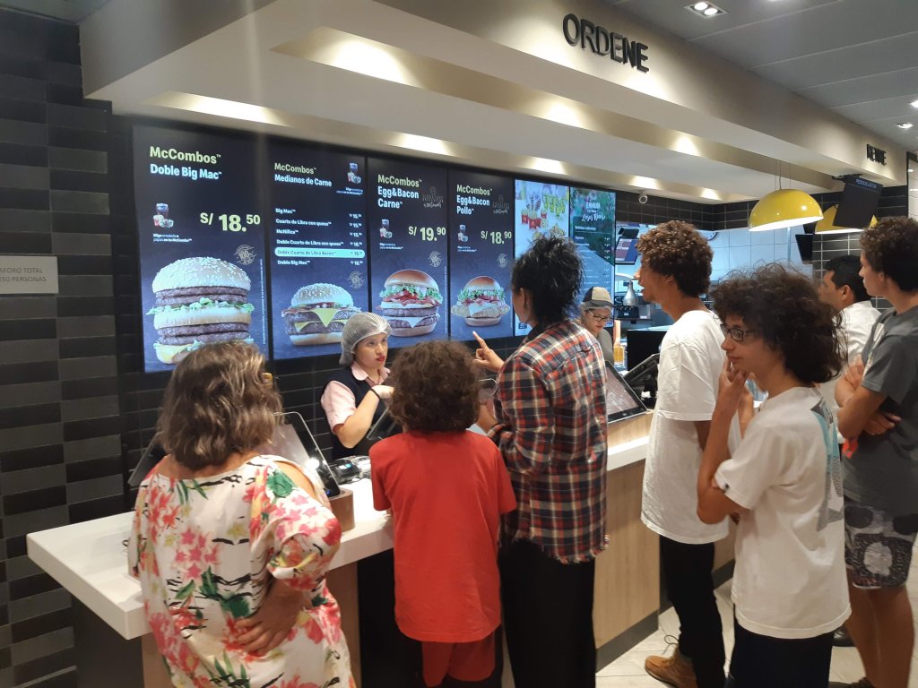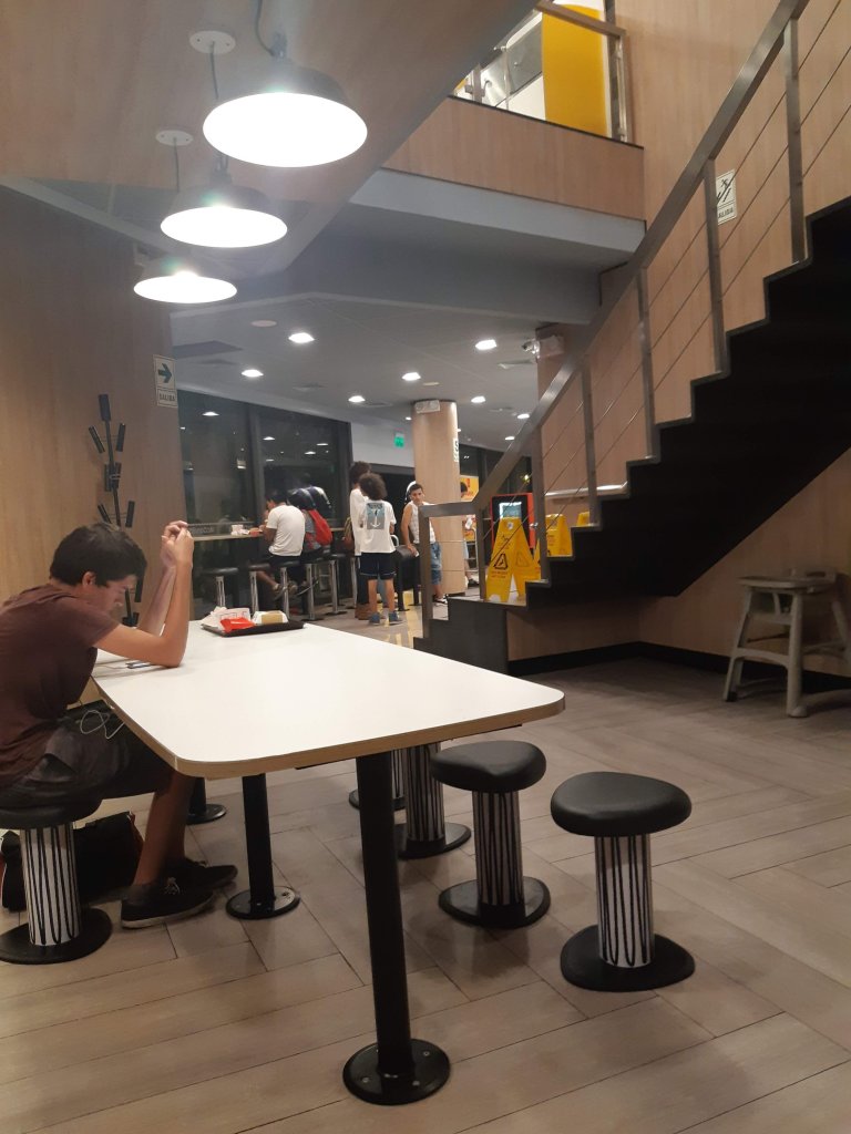 De Chancay partimos em direção a Lima. Cruzamos uma boa parte de Lima, já era passado da meia-noite. Fizemos uma extravagância e fomos comer no McDonalds num bairro chamado Miraflores. O local bem limpo. Deixamos o carro na rua, sem mais problemas. O que chamou atenção foi ver coxinhas de frango fritas ou empanadas serem oferecidas no cardápio.