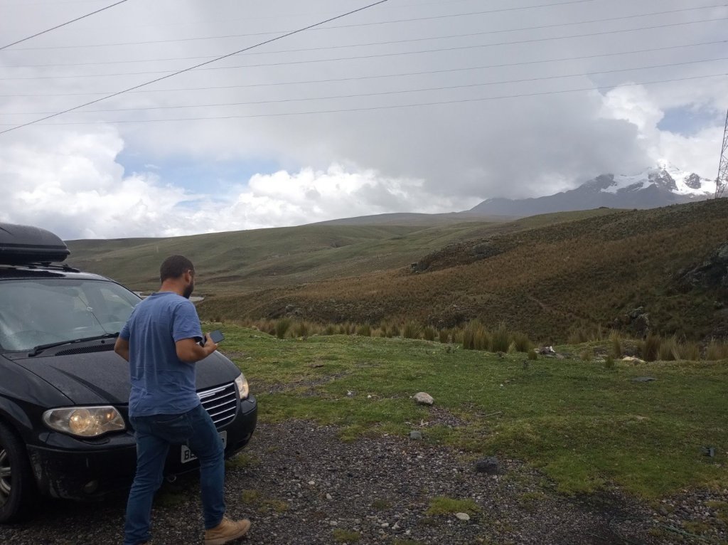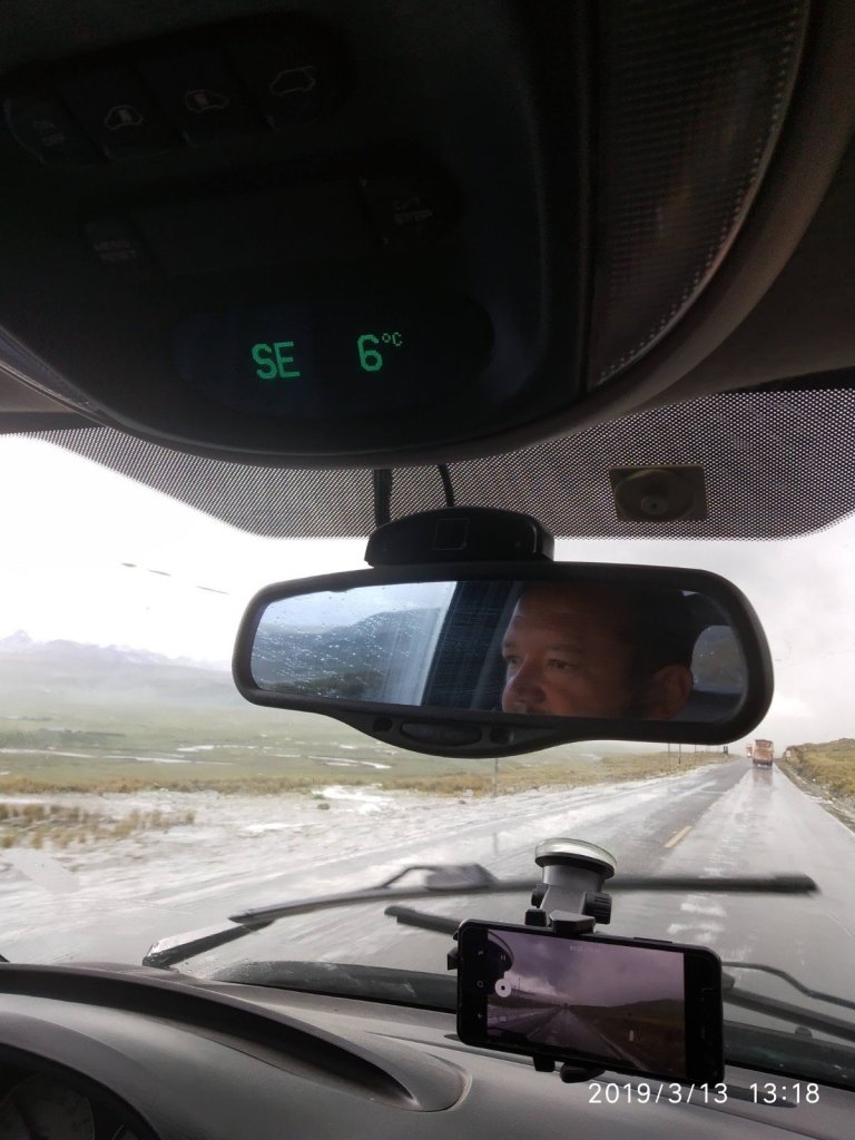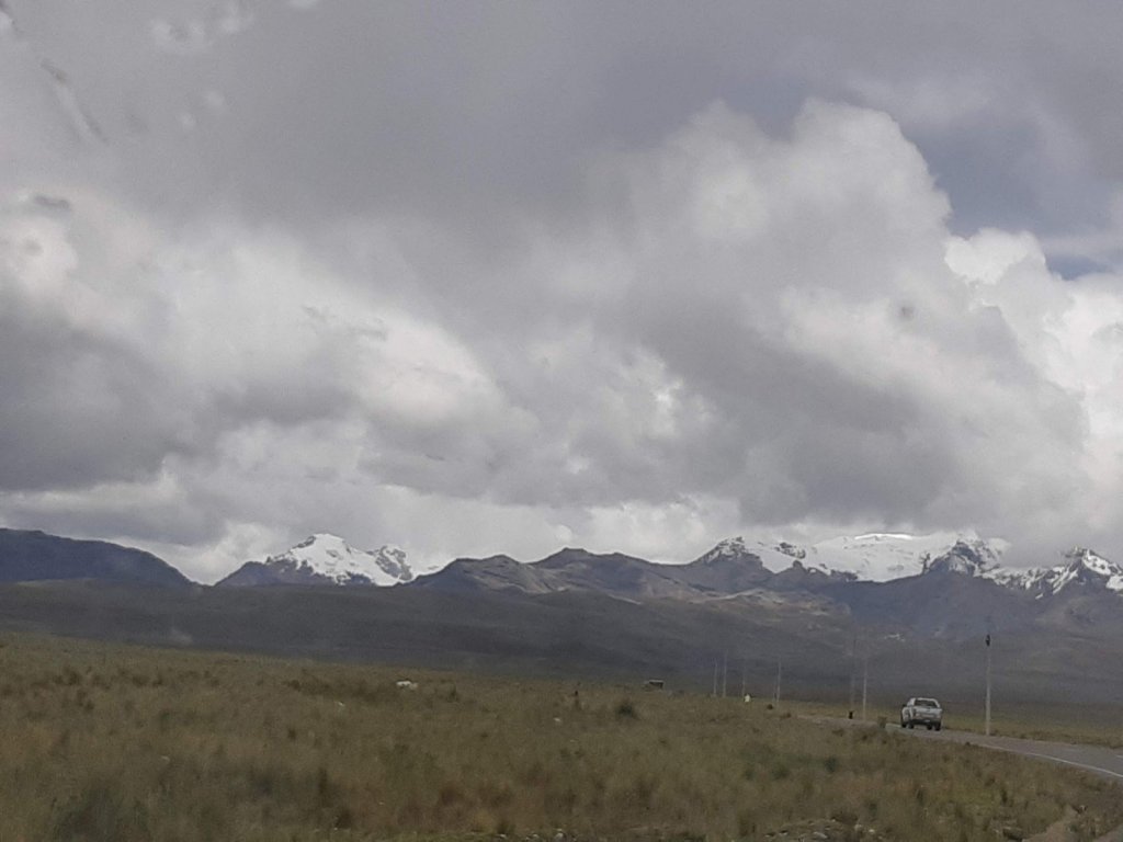 Na parte da manhã a viagem rendeu muito. A estrada com asfalto muito bom, sem tráfego pesado. Muito picos nevados! Até uma chuva de granizo achou a gente! Estávamos na cidade de Conococha.